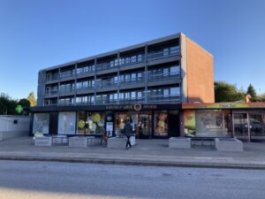 Valdemarsvej 1 i Kristrup ligger i et hyggeligt lokalområde med gode indkøbs- og servicefaciliteter. Tæt på finder man Kristrup Løve Apotek, Coop365 til dagligvareindkøb, en frisør samt et pizzeria. Tæt på skoler, bibliotek og grønne områder, hvilket gør det til et attraktivt sted for både familier og ældre. Ejendommen har 18 lejligheder og 2 erhversvlejemål